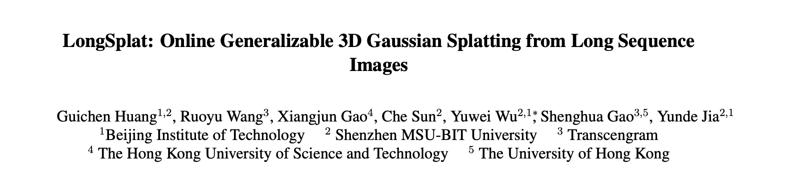 在计算机视觉领域,如何从图像进行高质量的重建和新视角图像合成一直是热点研究问题。其中3D高斯溅射(3D Gaussian Splatting, 3DGS)作为一种新兴技术,因能以众多三维高斯点表示场景并实现高保真、实时的渲染效果而备受关注。然而,大部分现有3DGS方法都需要逐场景的慢速优化,即每个场景单独训练模型参数,往往耗时数分钟甚至数小时。如此缓慢的重建过程对于需要实时感知和响应的应用(例如自主机器人、AR/VR设备),是一个重大障碍。现实需求迫切希望出现能够连续处理长序列视觉数据、随每帧更新并保持高质量重建的系统。