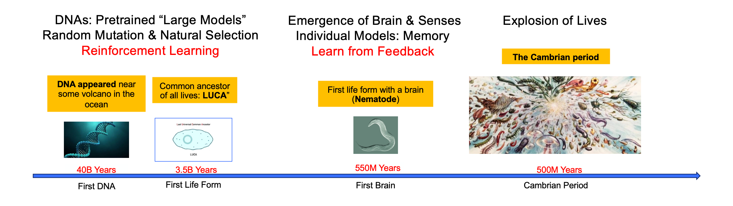 从最初的 DNA 到出现拥有大脑的生命,用了36亿年;从第一个大脑出现到寒武纪生命大爆发仅仅过去了5000万年。