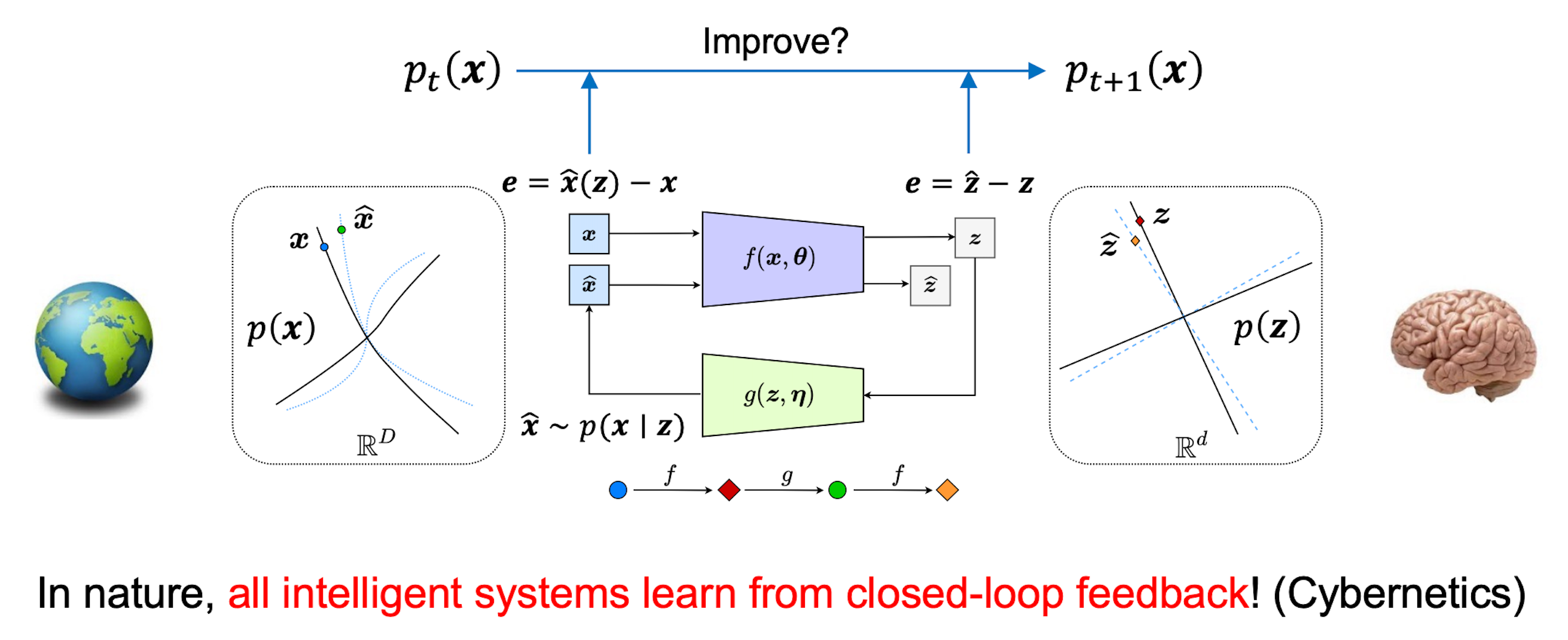 早在上世纪40年代,天才的诺伯特·维纳就曾经指出——自然界中,所有的智能系统都是利用闭环机制学习。我们要让系统自行实现双向编码与解码,对应识别与生成。通过控制与博弈,实现闭环反馈纠错、自主学习、自我改进。