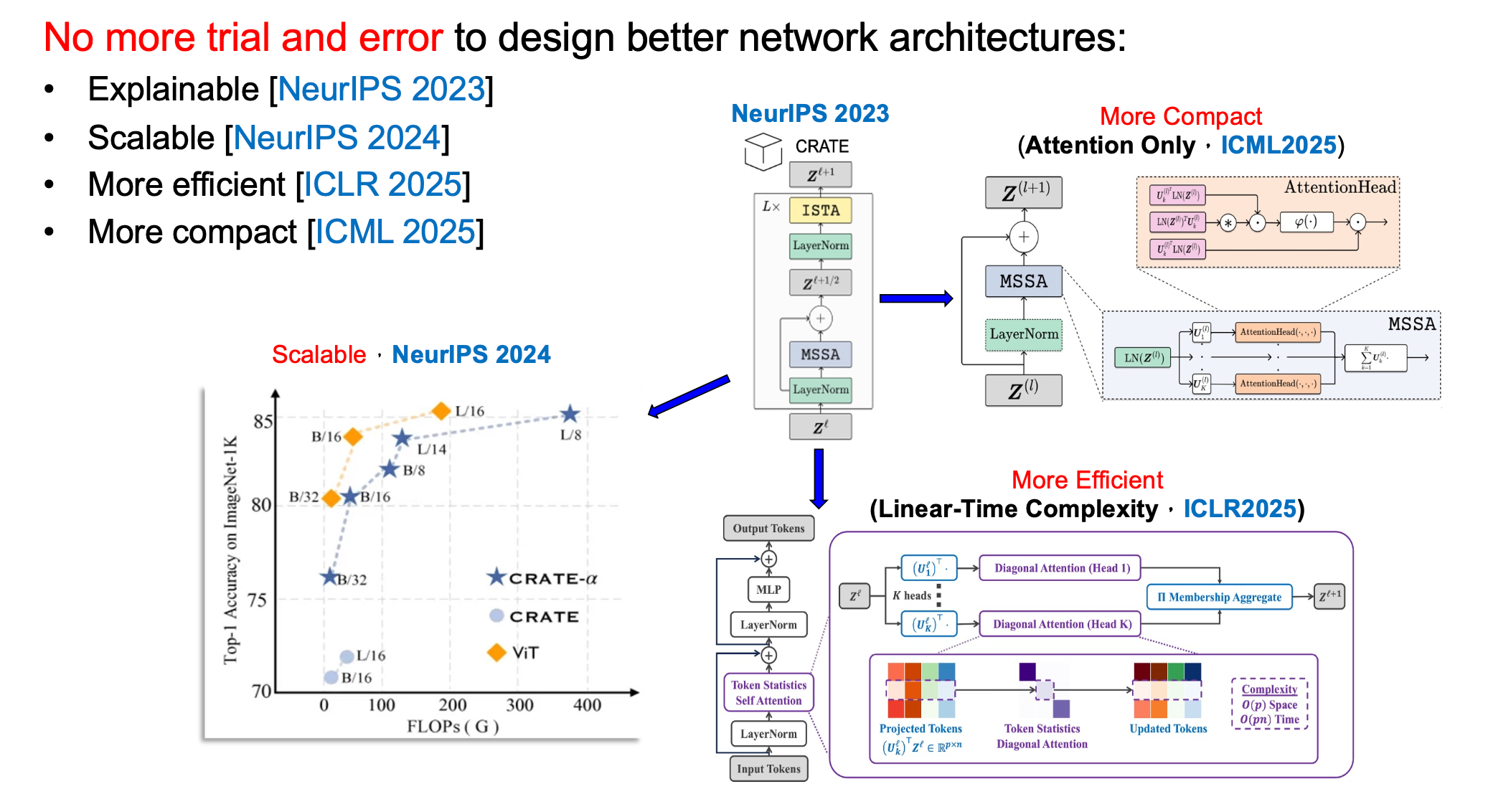 近年来的研究成果表明——我们完全可以从第一性原理构建更优质的网络,而不是只能通过反复试错来实现网络优化。2023-2025年间,我们的多项工作都指向一个可解释、可扩展、更高效且更紧凑的网络。